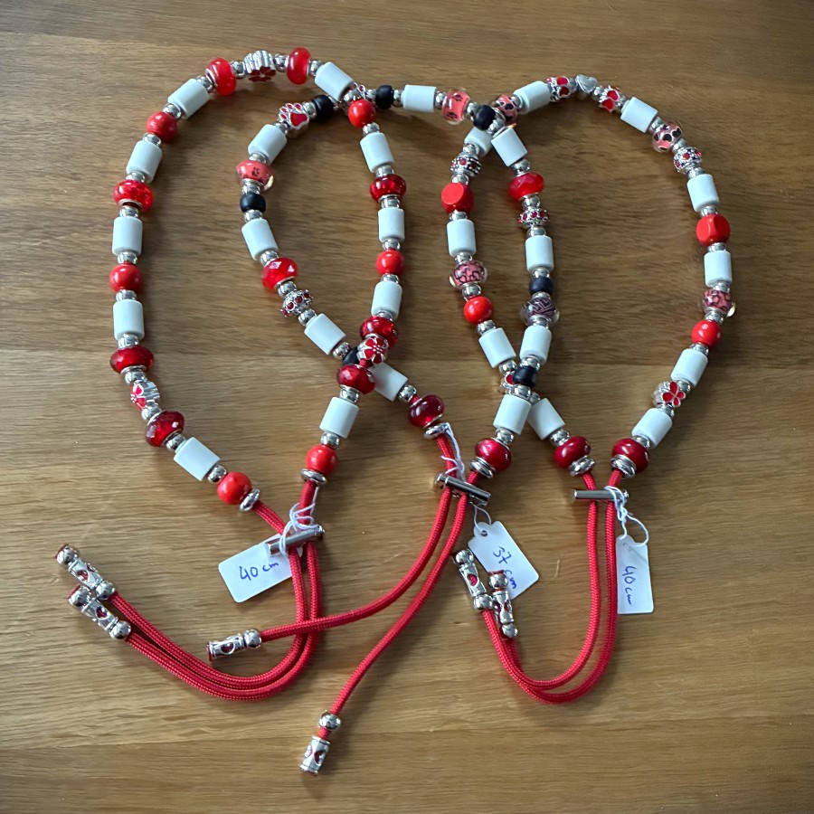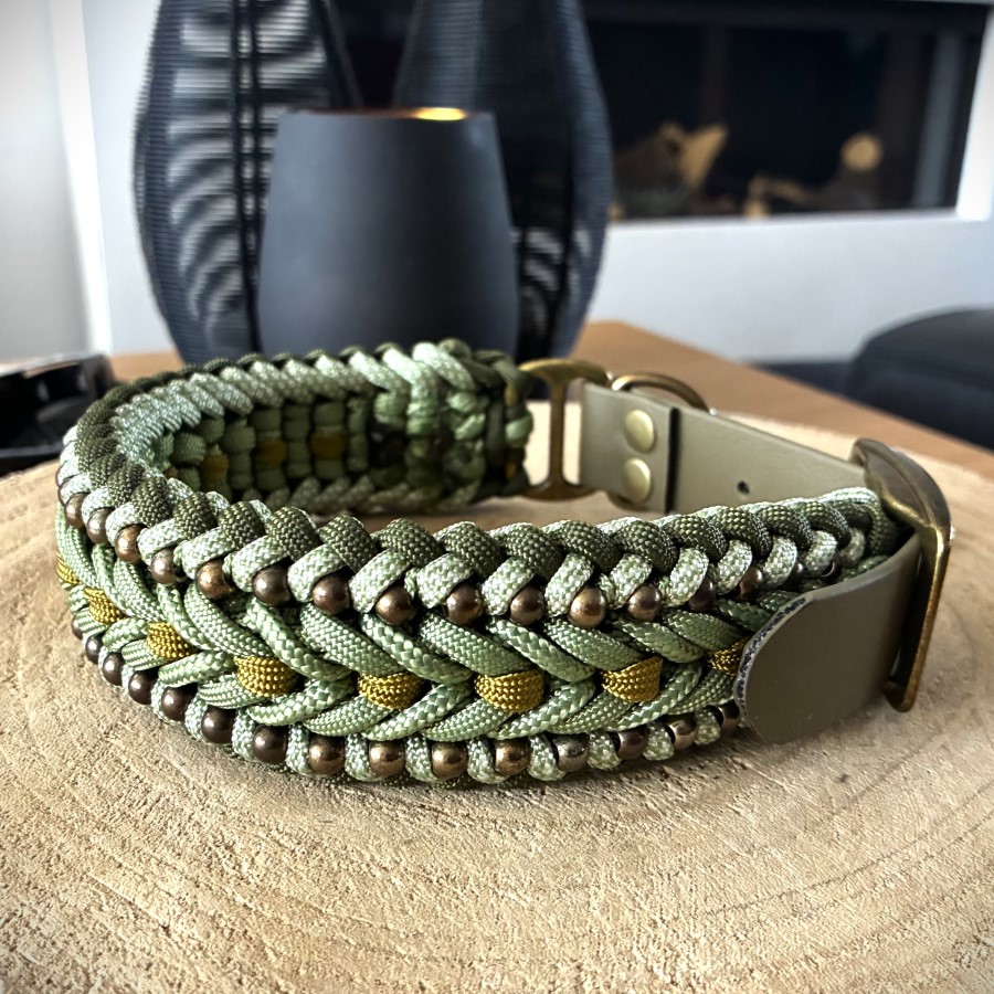 Halsband "Spider" in Fuchsia, Antraciet, Zwart/Zilver met bijpassende Lijn van PPM Koord.