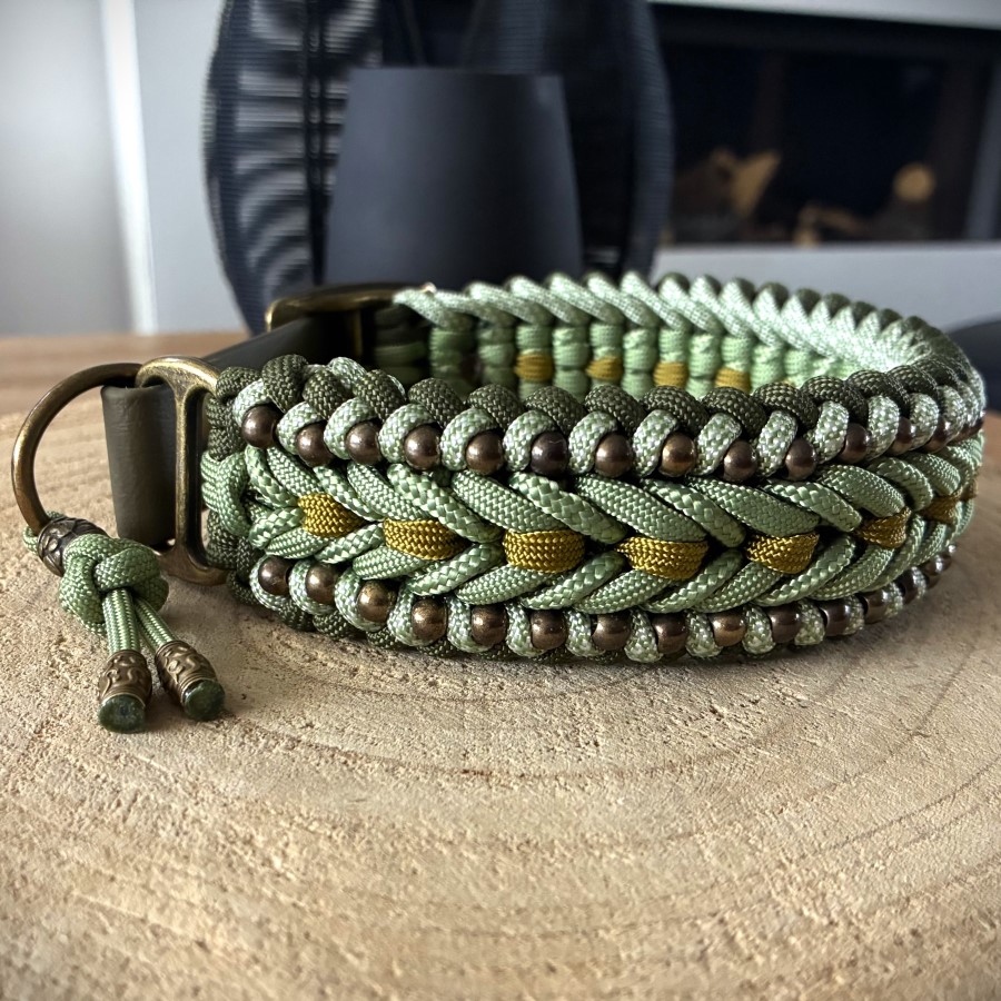 Halsband "Spider" in Fuchsia, Antraciet, Zwart/Zilver met bijpassende Lijn van PPM Koord.